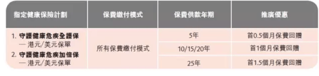 1、「守護健康危疾全護保」及「守護健康危疾加倍保」 高達首1.5個月保費回贈!