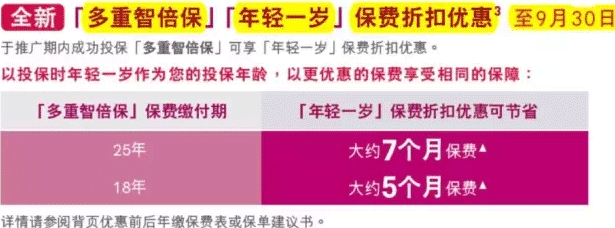 4、「多重智倍保」「年輕一歲」保費折扣優惠,可節省大約5個月保費