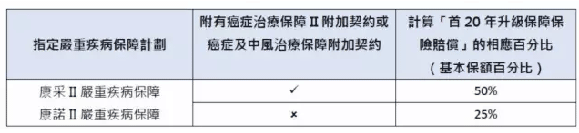 凡在2017年5月29日至2017年8月25日期間,成功投保任何指定嚴重疾病保障計畫,客戶在首20個保單年度有機會獲享首20年升級保障保險賠償!