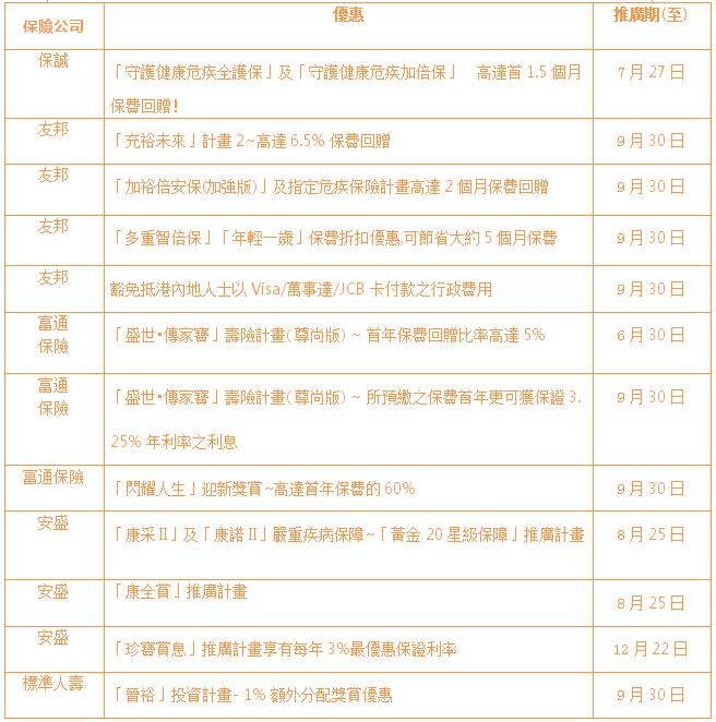客戶凡在2017年6月28日至7月27日期間成功投保任何以下指定健康保險計畫,可享受高達首1.5個月保費回贈。