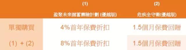 於2017年10月10日至12月31日(「推廣期」),凡成功投保「贏聚未來」儲蓄壽險計劃(優越版)、「危疾全守衛」(優越版)可享受保費回贈優惠: