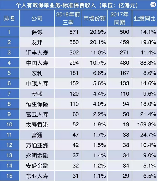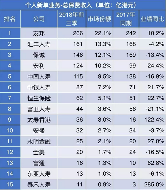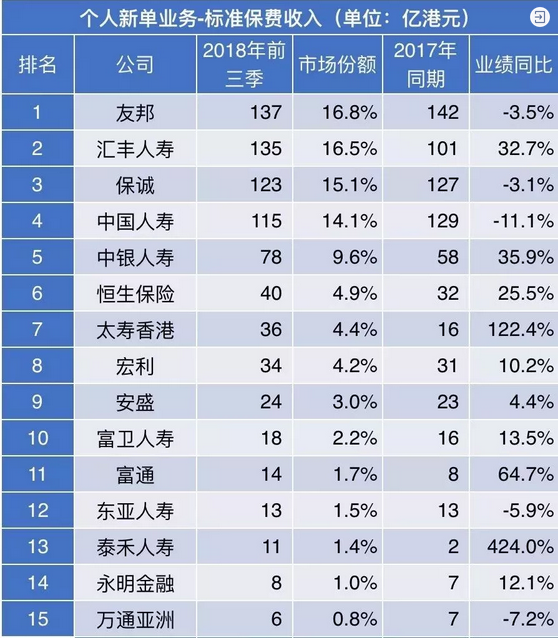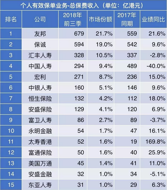 代理管道中,友邦、保誠、宏利、永明金融、安盛、富通等公司的業務量明顯較高。