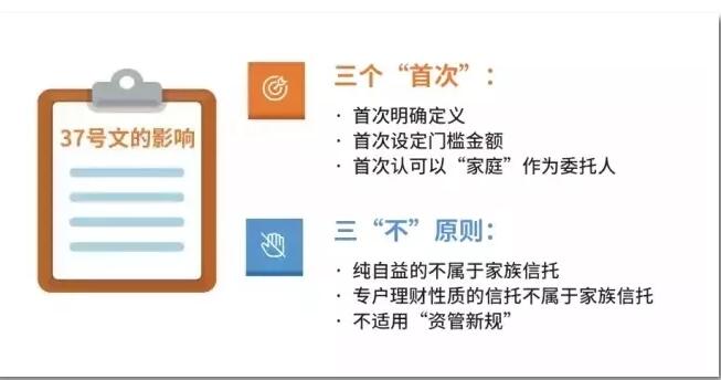 8月17日,銀保監會信託部向各地銀監局下發《關於加強規範資產管理業務過渡期內信託監管工作的通知》(信託函[2018]37號),簡稱“37號文”。在“37號文”中,官方首提家族信託。