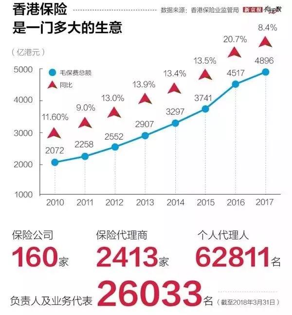 那一年,內地朋友來香港買保險的總額僅18億港元,占當時個人購買保險的5%。而次年(即2006年),內地朋友來香港買保險的總額增加了10億港元至28億港元。到了2016年,內地朋友購買保險的總額高達727億港元。