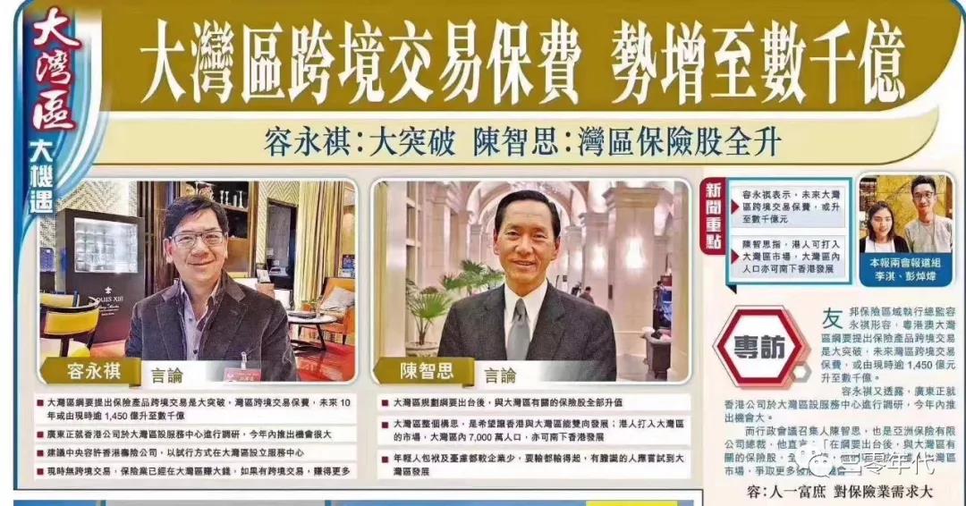 關於跨境如何支付保費,既便捷投保人又符合內地外匯管制政策,友邦AIA執行區域總監,政協經委會副主任容永祺負責推動。