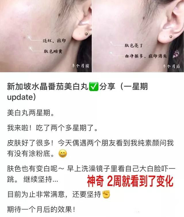 Crystal Tomato美白丸的美白效果
