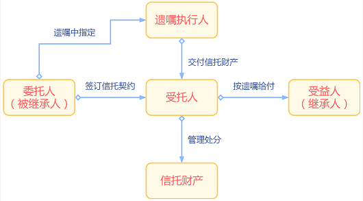 遺囑信託其實是“遺囑+信託”兩個概念,是指通過遺囑這種法律行為而設立的信託,又稱為身後信託。當委託人以立遺囑的方式,把財產交付信託時,就是所謂的遺囑信託,也就是委託人預先以立遺囑方式,將財產的規劃內容,包括交付信託後遺產的管理、分配、運用及給付等,詳訂於遺囑中,等到遺囑生效時,再將信託財產轉移給受託人,由受託人依據信託的內容,也就是委託人遺囑所交辦的事項,管理處分信託財產。