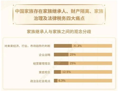 白皮書介紹,中國家族對家族傳承和家族管理的需求痛點集中體現在家族繼承人、家族企業與家族財產權利界限、家族內部矛盾以及家族稅務四大方面。