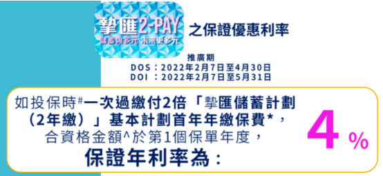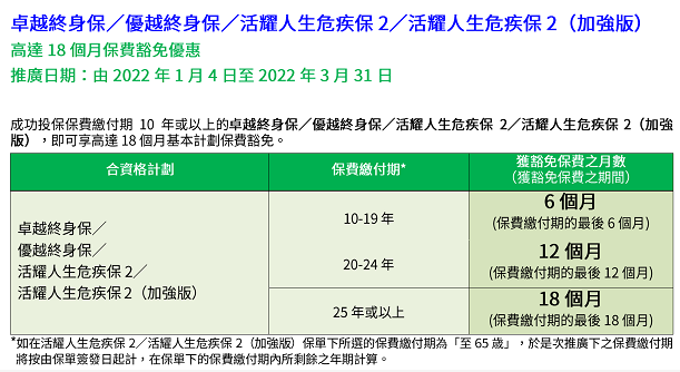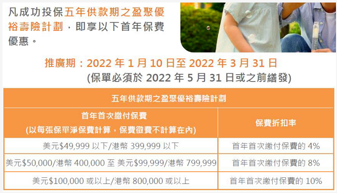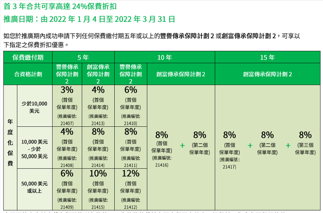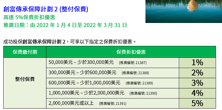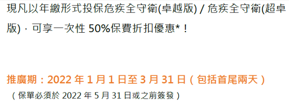 推廣時間:2022年1月1日至2022年3月31日(美元保單)
