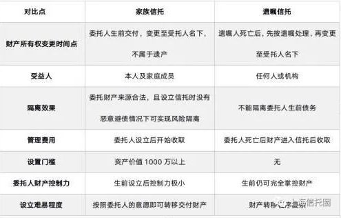 生前信託以典型的家族信託為參考,生後信託以典型的遺囑信託為參考,主要羅列不同之處: