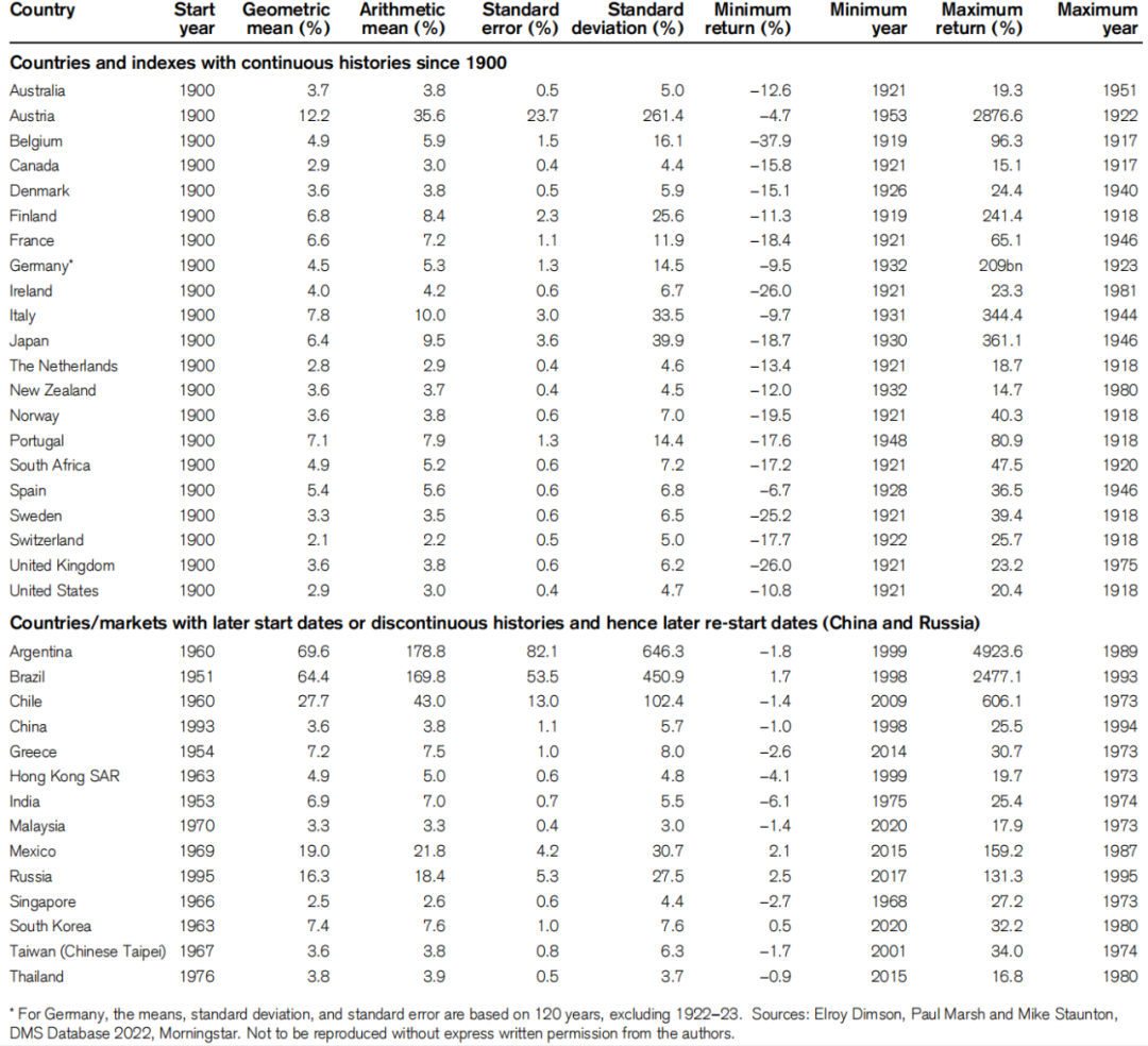 (各國通脹率數據,表格上半部分是可追溯到1900年的21個國家)