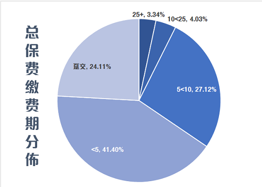 2.按供款期分類,短年期的單最多,包括5年以下的保單占近2/3: