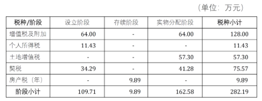 (1)增值稅及附加稅費:信託財產需要以差額(分配時房產價值扣除交付時房產價值)為基數按照9%的稅率徵收增值稅,並以增值稅為基數徵收12%的附加稅費。