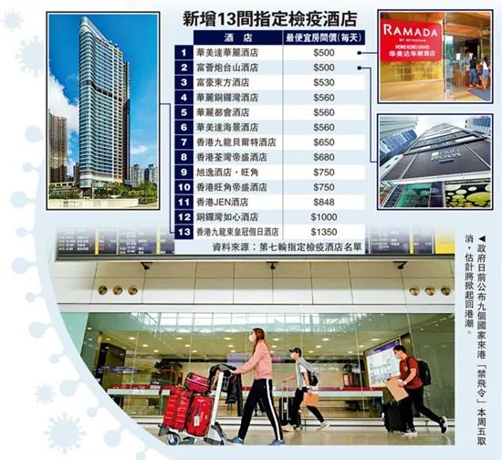 《大公報》表示,4月上旬指定檢疫酒店的房間供應較為緊張,每晚1000元以下的預定幾乎爆滿,但每晚1000元或以上的還有供應,而且酒店的價格普遍漲價10%-20%。
