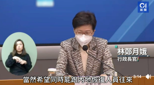 林鄭說“很難講”先後次序,要看實際情況。香港的優勢是作為連通海外的橋樑,所以與內地和海外通關都是工作重點,政府的立場是希望同時與內地及海外恢復人員往來。