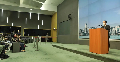 李家超表示,他已經向行政長官遞交辭職信,辭去香港特別行政區政務司司長職務,並請行政長官按基本法第48(5)條,建議中央人民政府批准他的辭職,免去其政務司司長的職務。