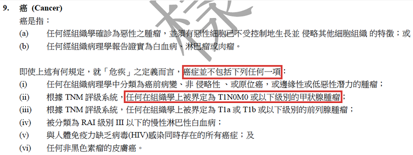 香港保險按照甲狀腺癌的輕重程度,分級賠付:以友邦「加裕智倍保」為例,T1N0M0級別的甲狀腺癌,按早期危疾賠付,賠付比例20%;T1N0M0以上的甲狀腺癌,按重疾賠付,賠付比例100%。