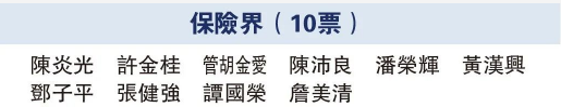 工商金融界裏有18個分組,其中就包含保險界,保險界投出了10票。