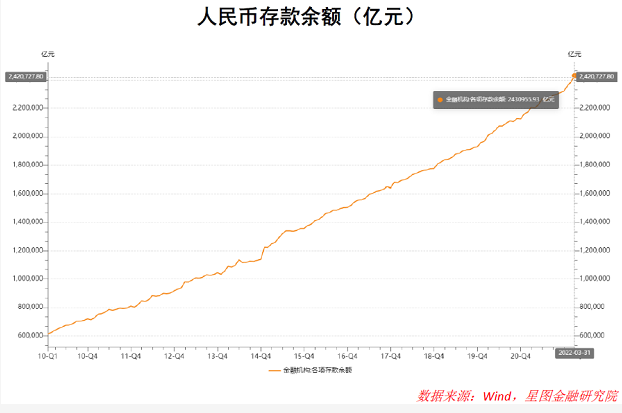 數據顯示,2022年3月人民幣存款餘額為243萬億元,同比增長10.04%。2022年一季度人民幣存款新增10.9萬億元,同比增長達到了30%。240多萬億的人民幣存款市場發生利率變動,勢必會影響整個金融市場的定價中樞。