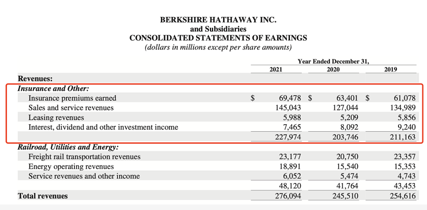其中,排名榜首的是其保險公司。作為伯克希爾100%控股的公司,保險板塊為其提供了巨大的浮動資金。巴菲特表示,保險業務是為伯克希爾量身定做的,產品永遠不會過時,銷量通常會隨著經濟增長和通貨膨脹而增加。此外,誠信和資本將永遠重要。