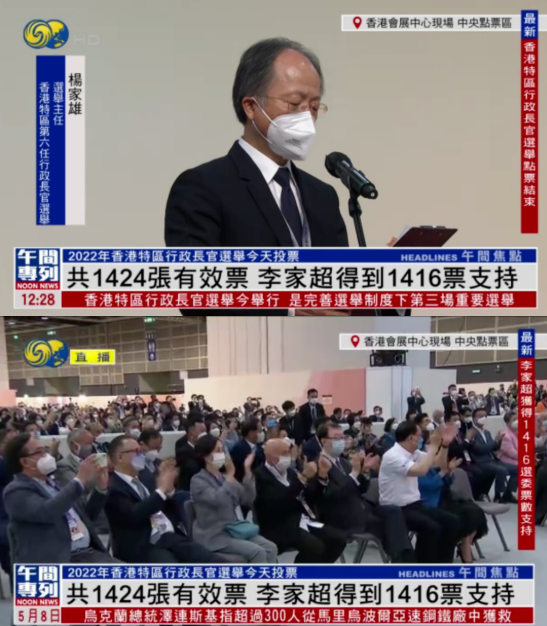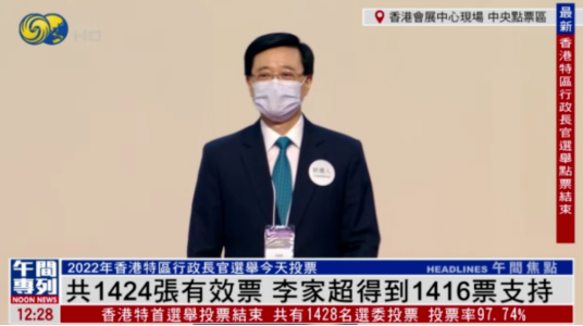 2022年5月8日,李家超以1416票成為香港特別行政區第六任行政長官人選。