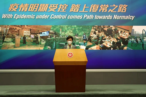 她表示,會繼續確保社會有序複常,指不用太在意每日確診數高低,在低位時疫情難免有波動,又表示傾向在6月下旬進行第三階段放寬防疫措施,她指,再放寬基本上就是全部放寬,會再觀察一下,認為應該在更寬鬆的環境慶祝香港回歸25周年。