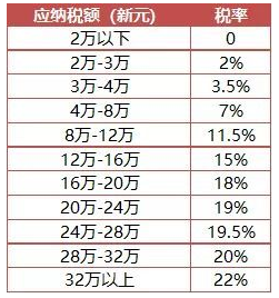 新加坡個人所得稅稅階: