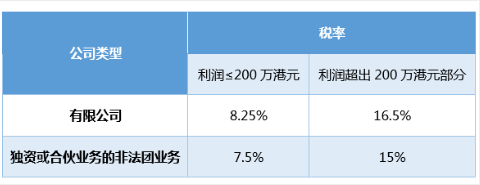按照法律條例規定,如果公司營業利潤未達到200萬港幣的,則可按照新實施的8.25%進行征稅,而超過200萬港幣的,首個200萬港幣仍然以8.25%進行徵收,超過的利潤才會以16.5%進行徵收。至於獨資或合夥業務的非法團業務,兩級的利得稅稅率相應為7.5%及15%。