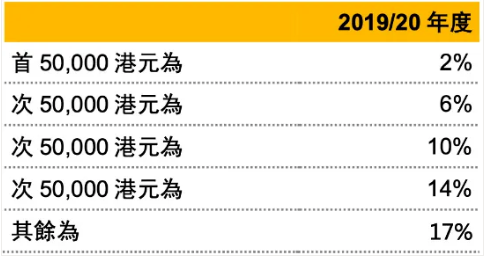 個人所得稅在香港叫薪俸稅,可以按累進稅率或者標準稅率計算,以繳納較少者為準。標準稅率以凈收入總額的15%計算,累進稅率按不同稅階計算: