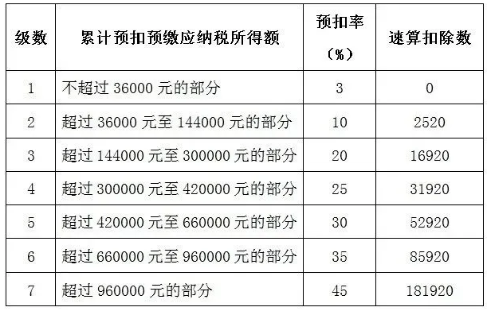 無免稅額的個人所得稅稅率表