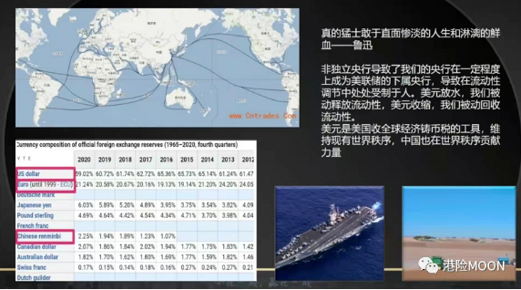 § 全球前五大儲備貨幣:人民幣(2.88%)、美元(58.88%)、歐元(20.06%)、日元(5.36%)、英鎊(4.97%);