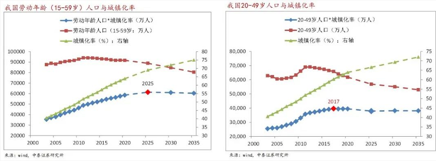 當前我們面臨的最重要的經濟轉型,就是房地產市場的上行長週期已經過去,這對經濟的影響是巨大而且深遠的。越來越多人認為,房地產對中國經濟增長的巨大支撐力量正在逐步減弱。同樣受疫情影響,2020年房地產投資增速是7%,今年上半年是-5.4%。這意味著2020年房地產是經濟增長的動力,而現在卻已經成為阻力。另一方面,這也意味著我國經濟不得不轉型。判斷房地產市場是否出現拐點,我們採用的是“年輕人口規模*城鎮化率”這一指標(圖2、圖3),而不能單純地用城鎮化率做出判斷。因為人口年齡結構已經發生了深刻變化。
