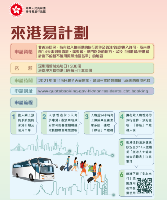 擬使用「來港易」計畫入境香港的人士,須透過計畫的網上預約系統進行預約。特區政府會密切留意計畫的實施情況,並與廣東省政府保持緊密聯繫,按需要適時調整計畫的相關安排。