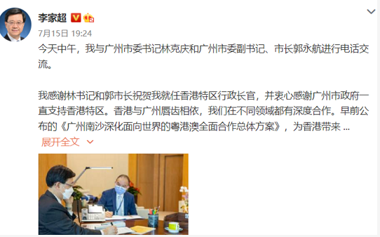 實際上,李家超上任已接近2個月,期間因疫情原因原本計畫7月就訪問廣州和深圳被迫推遲,而目前深廣兩地疫情已經穩定,是一個好的時機。