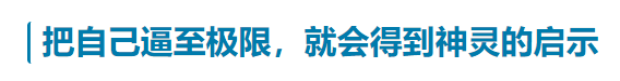 人往往趨向於避難就易,因此,要時時有意識地把自己逼入後無退路的精神狀態,這樣就能夠催生出連自己都驚訝的成果。