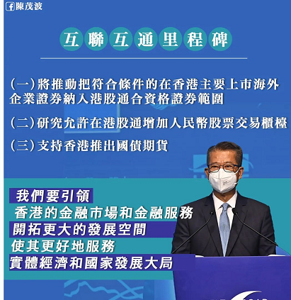 對此,陳茂波表示,內地與香港金融市場的「互聯互通」一直在深化和拓闊,認為上述三項舉措,對最新階段的「互聯互通」,具有標誌性作用。