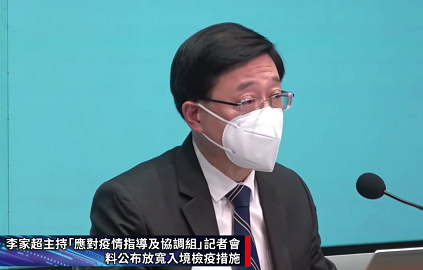 李家超宣佈,週一(9月26日)起,海外及台灣由機場來港人士檢疫安排由3+4轉為“0+3”,即無須酒店檢疫,三天居家醫學監察,無確診可返工返學。