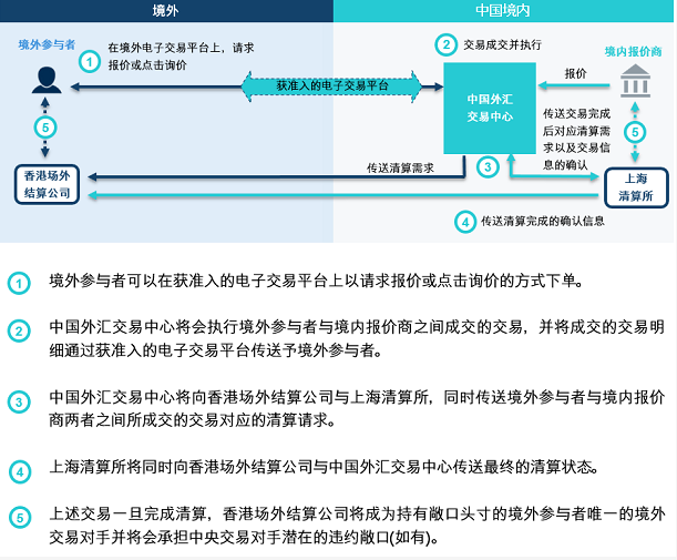 在“互換通”下,境外投資者可以通過中國人民銀行認可的境外第三方電子交易平臺進行交易,完全不改變他們日常的衍生品電子交易習慣。而在結算方面,他們的對手方只有一個——香港場外結算公司,只要成為香港場外結算公司的結算客戶,境外投資者就可以享受國際一流的快捷結算服務,不用擔心結算對手方風險,也無需改變他們常用的結算習慣。