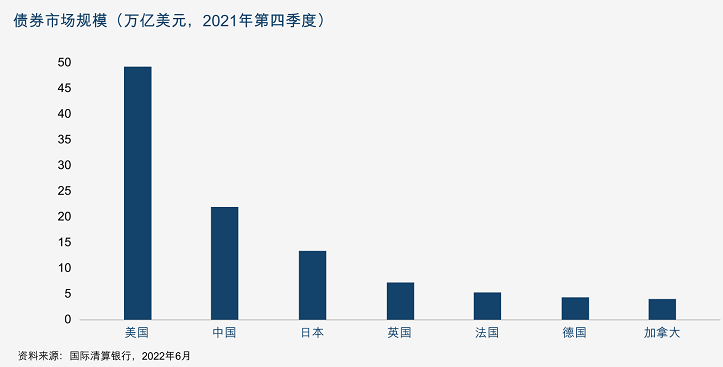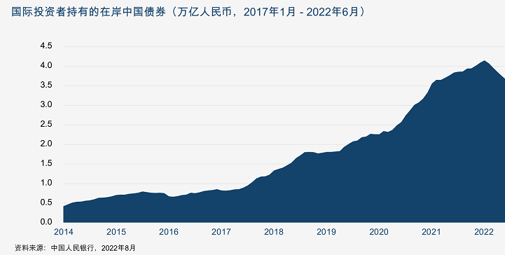 中國目前已經是全球第二大債券市場,近幾年來,中國債券市場對外開放的進程不斷提速。尤其是隨著債券通的推出,國際投資者持有內地債券資產規模不斷上升,已從2017年6月的0.9萬億元人民幣增至2021年12月的人民幣4.1萬億元人民幣。