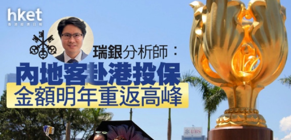 瑞銀投資研究亞洲保險和非銀行金融行菜研究孰行董事朱曉指,瑞所(Evidence Lab)調查,內地客短期境外投資興趣大,因香港保除產品的長期回、品牌較優勝,看好2024年內地人赴港投保金額可回到疫情前高峰。