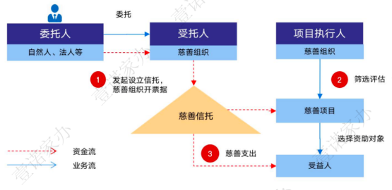 雖然目前法律並未對此限制。但如果慈善組織同時作為委託人及專案執行人,那該慈善信託最終資助的慈善專案或受益人很可能是該慈善組織擬自助的對象,亦或資金再由慈善信託劃至專案執行人帳戶。