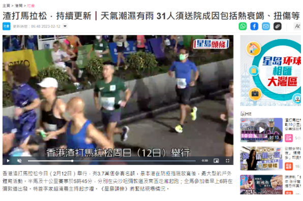 完賽後看新聞報導,一共有31人需要送院治療。這個天氣跑步確實是對體能和意志的雙重考驗。