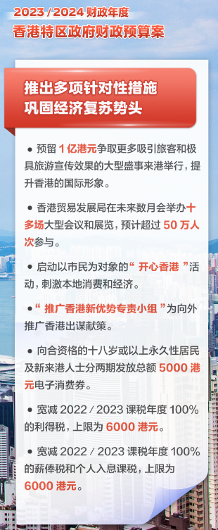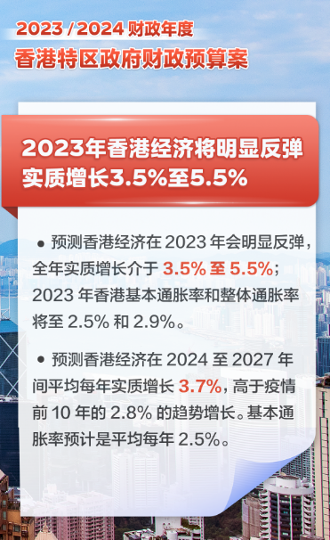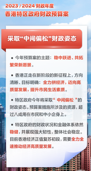 香港特區政府財政司司長陳茂波昨日(22日)發表2023/2024財政年度特區政府財政預算案。今年預算案的主題是:穩中躍進、共拓繁榮新願景。