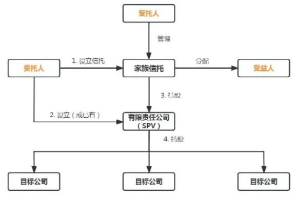 在此架構下,家族信託是目標公司的股東,在法律層面上來由信託公司行使股東的權利,承擔股東的義務。