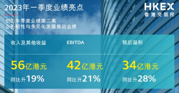 港交所(00388)周三(4月26日)公布2023年第一季度業績,截至3月底止首季股東應佔溢利34.08億元,按年增長27.74%,按季上升14%,創歷來第二高,優於市場預期。每股基本盈利2.69元。