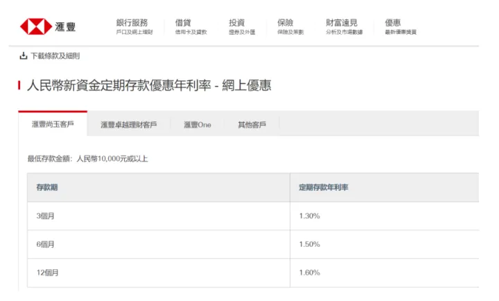 湧金君查詢後發現,如果是一年期的人民幣存款,香港和內地比較沒啥優勢。