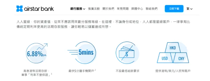 我們不妨解剖一只麻雀,比如天星銀行推出的一款頗具誘惑力的6.88%年利率港幣活期存款,它就包含多個限定條件。