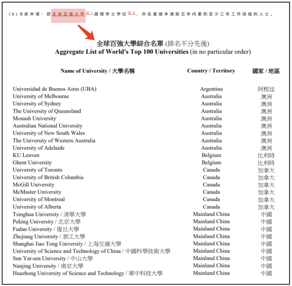 非全球百強大學畢業生也可以申請