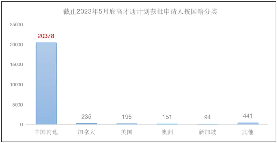 截至2023年5月底,高才通獲批的申請人中超2萬人都來自內地