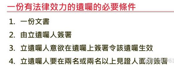 遺囑雖然是設立容易,但用字,規格,形式上也有嚴格要求,非專業人士自行操作,往往會犯了各種問題,日後在辦理遺產承辦的手續上增加了困難,甚至失效。以上種種例子可見,僅僅用遺囑去分配資產的風險是挺高!